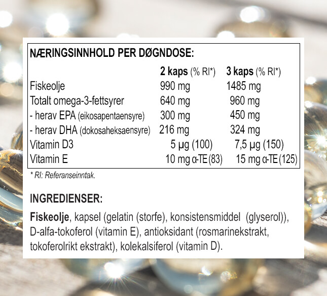 - Fiskeolje fra bærekraftig fiske. Sertifisert av Friend of the Sea